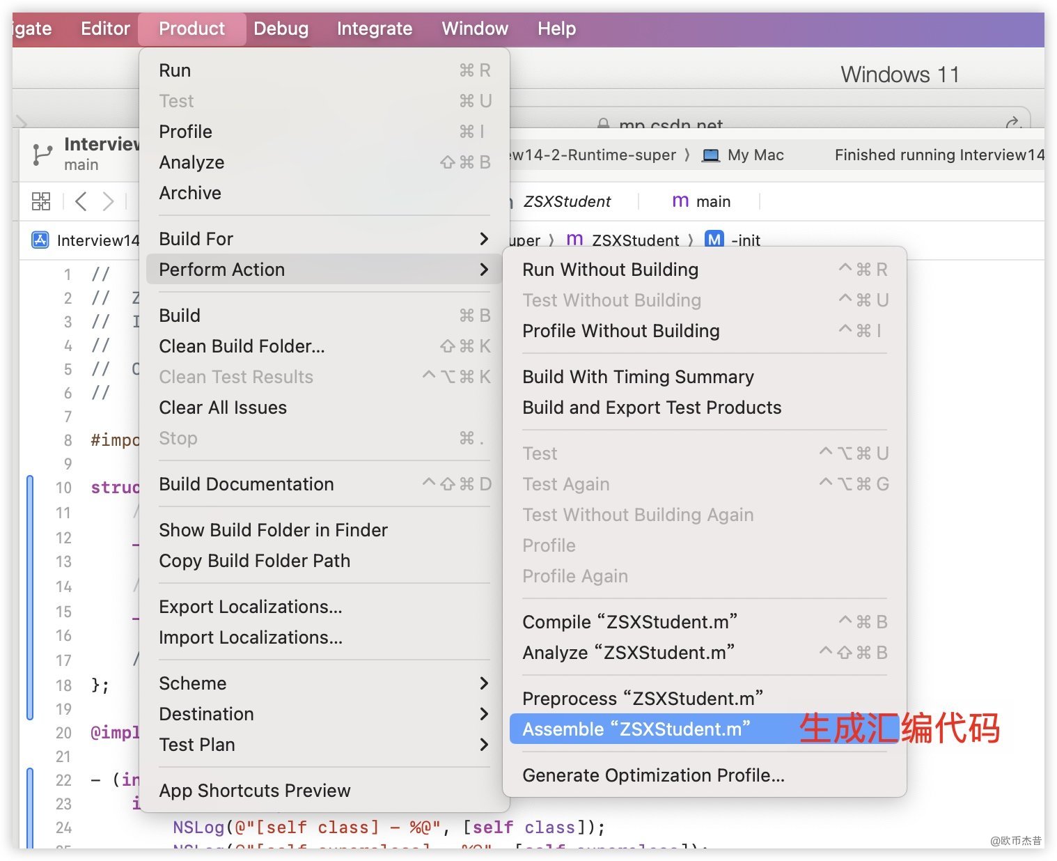 通过如下操作,可以将OC类转为汇编代码