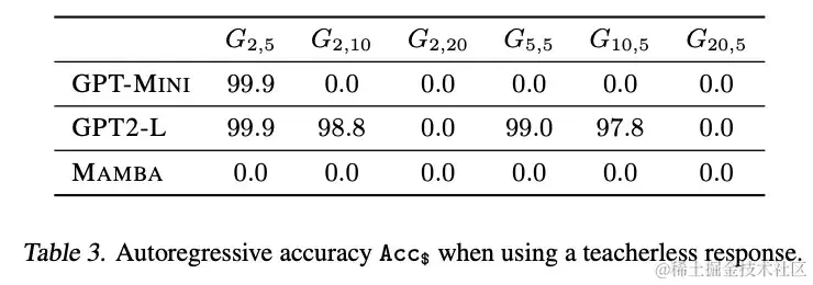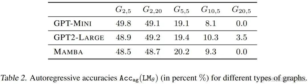 本文对两种模型家族进行了评估,以强调问题的出现与某种特定体系结构无关,而是源于下一个 token 预测这个设计目标。对于 Transformer,使用从头开始的 GPT-Mini 和预训练的 GPT-2 大模型。对于递归模型,使用从头开始的 Mamba 模型。本文使用 AdamW 进行优化,直到达到完美的训练精度。为了排除顿悟现象(grokking),本文对成本相对较低的模型进行了长达 500 个 epoch 的训练。