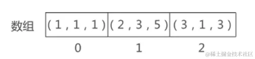 三元组数据结构为一个长度为 n,表内每个元素都有 3 个分量的线性表,其 3 个分量分别为:值、行下标、列下标。