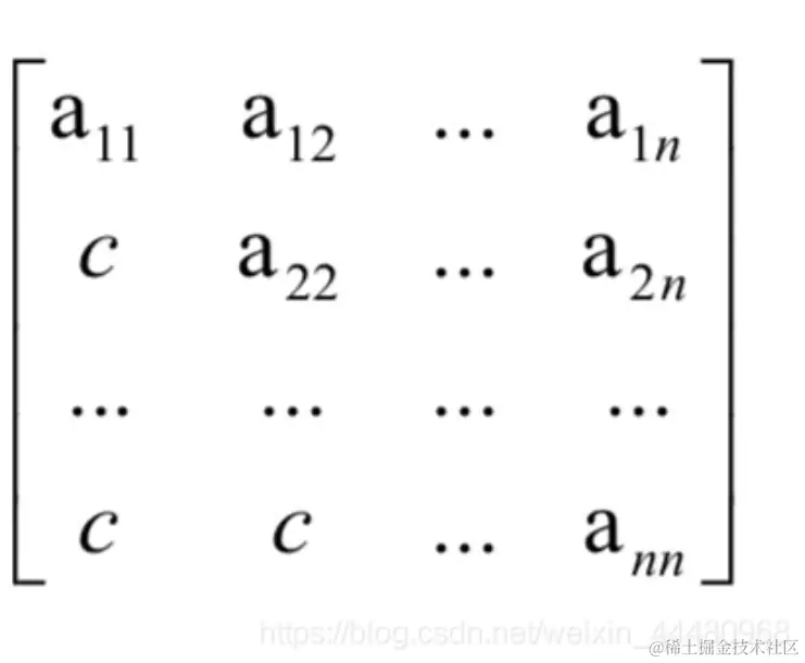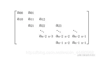 下三角矩阵是指上三角区所有元素均为同一常量,设有下三角矩阵 ai,j 如下图所示: