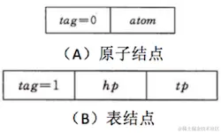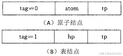 - 原子结点:标记域(tag)、数据域(atom)、尾指针域(tp)。