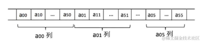 即,以行序为主(先行后序):按照列号从小到大的顺序,依次存储每一行的元素。