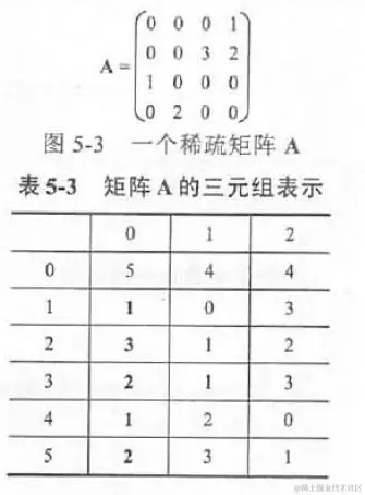 即,矩阵中绝大多数都为相同元素 C(一般假设为 0)的矩阵为稀疏矩阵。