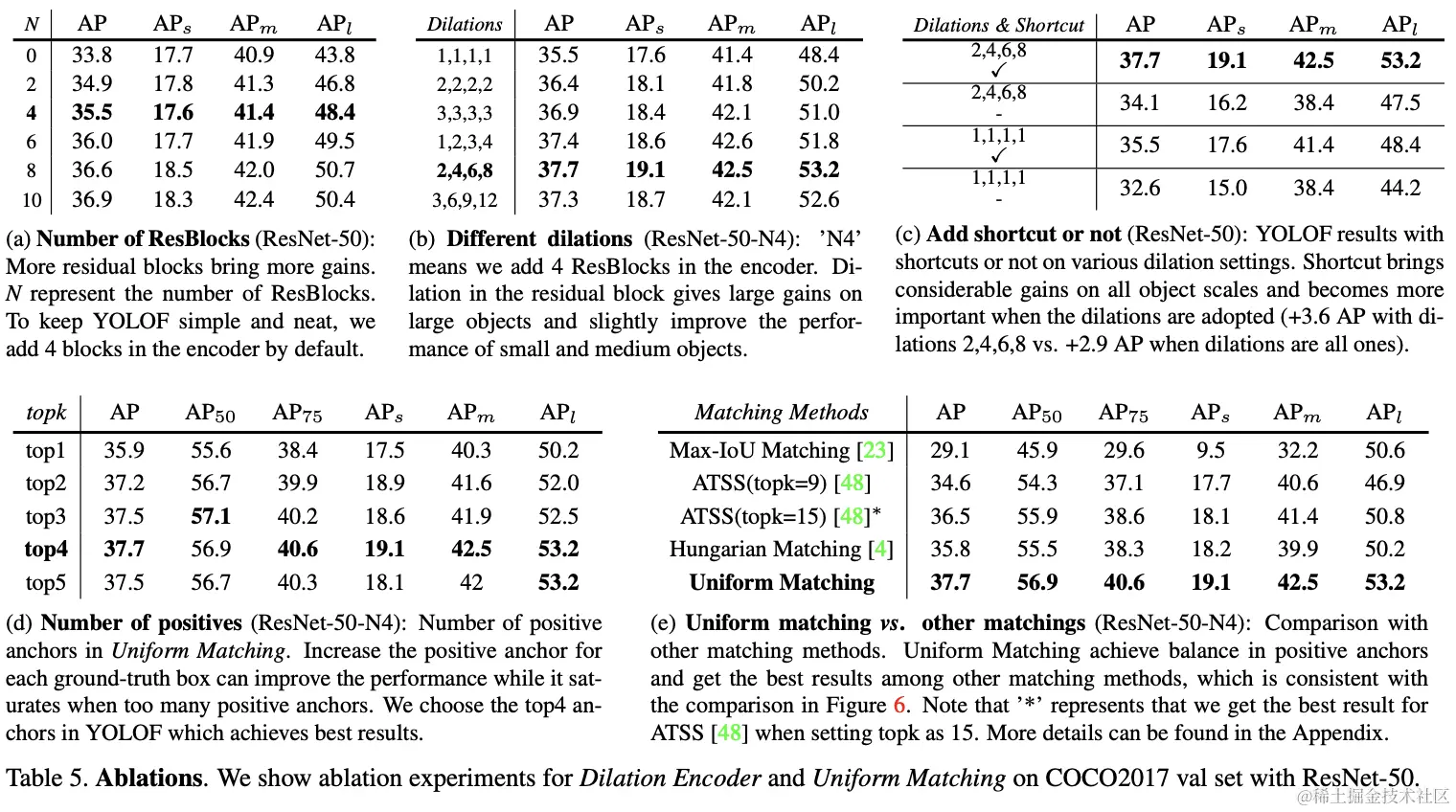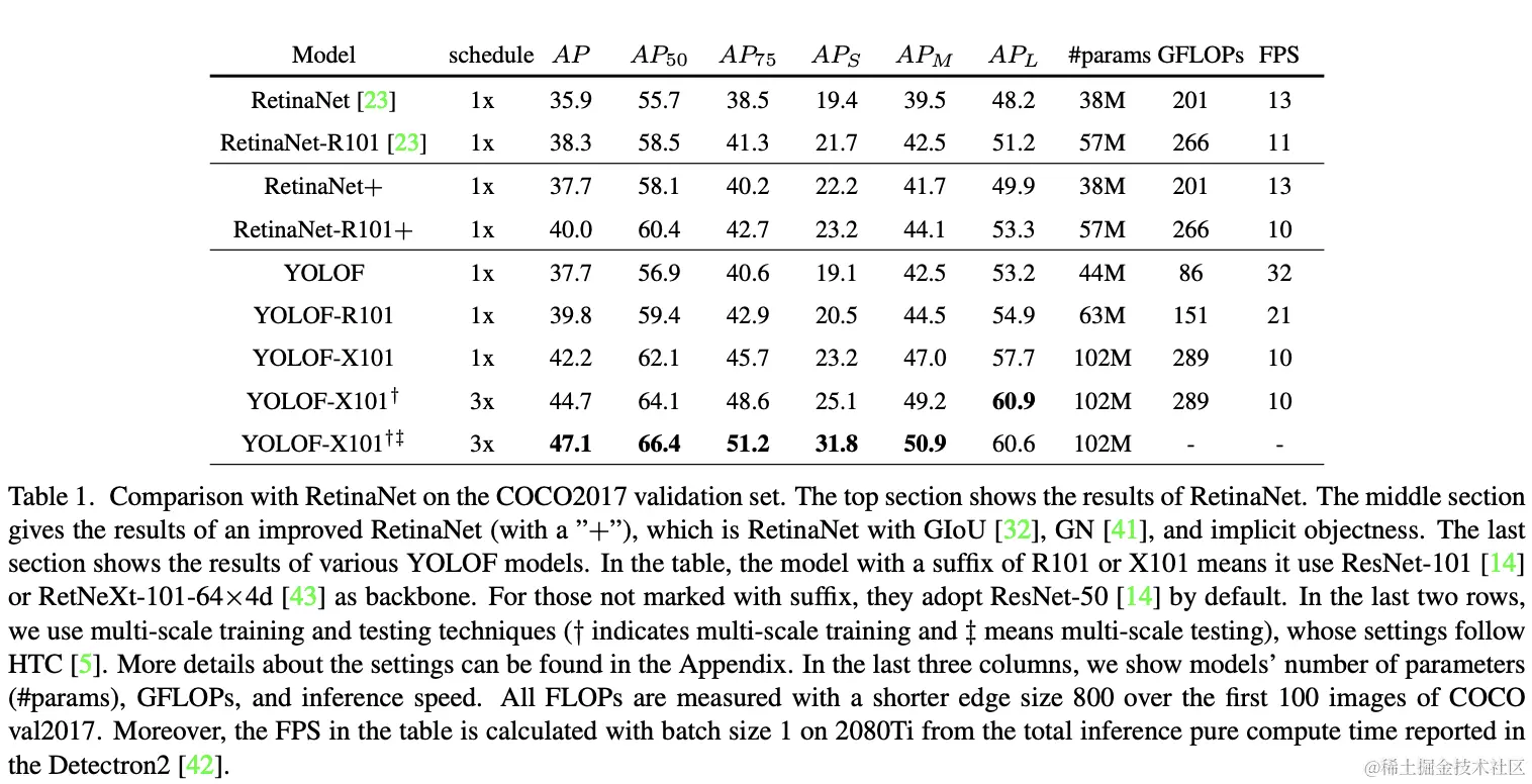 - 提出不含FPN的YOLOF模型,包含两个关键模块:Dilated Encoder和Uniform Matching,能够缩小SiSo encoder和MiMo encoder的性能差异。
