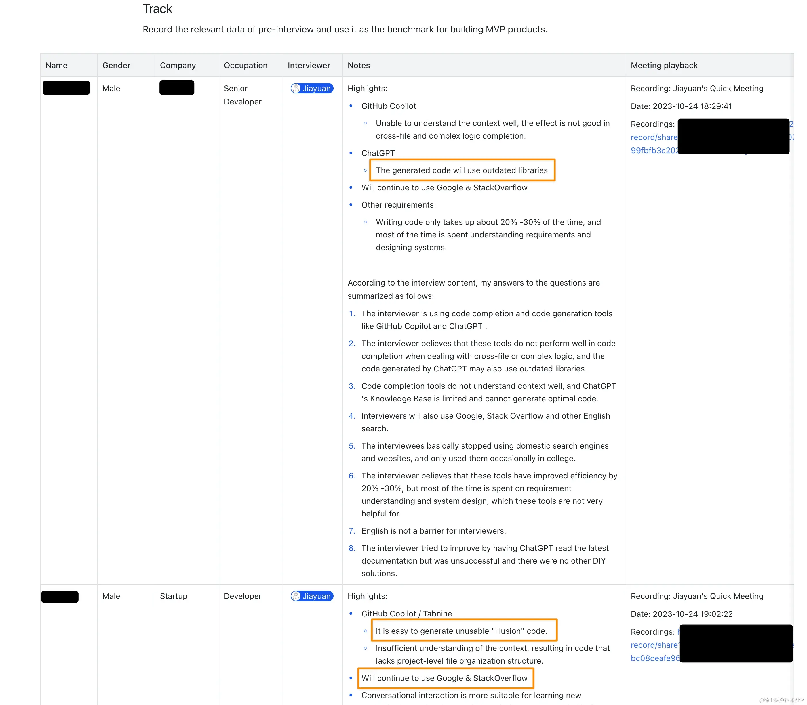 在编码一行代码之前,我想深刻理解目标用户的需求和痛点。我通过Zoom与50位不同背景的开发者进行了一对一访谈,探讨他们当前面对的挑战以及正在使用的解决方案。一个共性问题浮现出来:开发者厌倦了从通用AI工具那里得到的不精确的代码片段和说明。他们渴望一个可靠的、专注于开发者的替代方案。