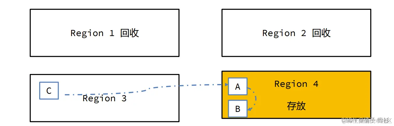 - 对象转移:在选择好目标区域后,垃圾收集器会开始转移过程。转移时,首先会处理GC Root直接引用的对象,这些对象通常是垃圾回收过程中的根节点,它们保证了程序的运行不会因垃圾回收而中断。在复制这些对象之后,垃圾收集器会继续转移其他非直接引用的对象,直到所有选定区域中的存活对象都被复制到新的内存区域。