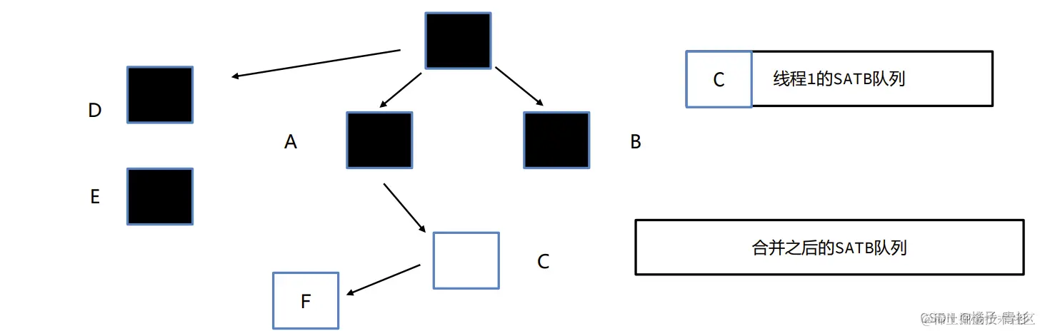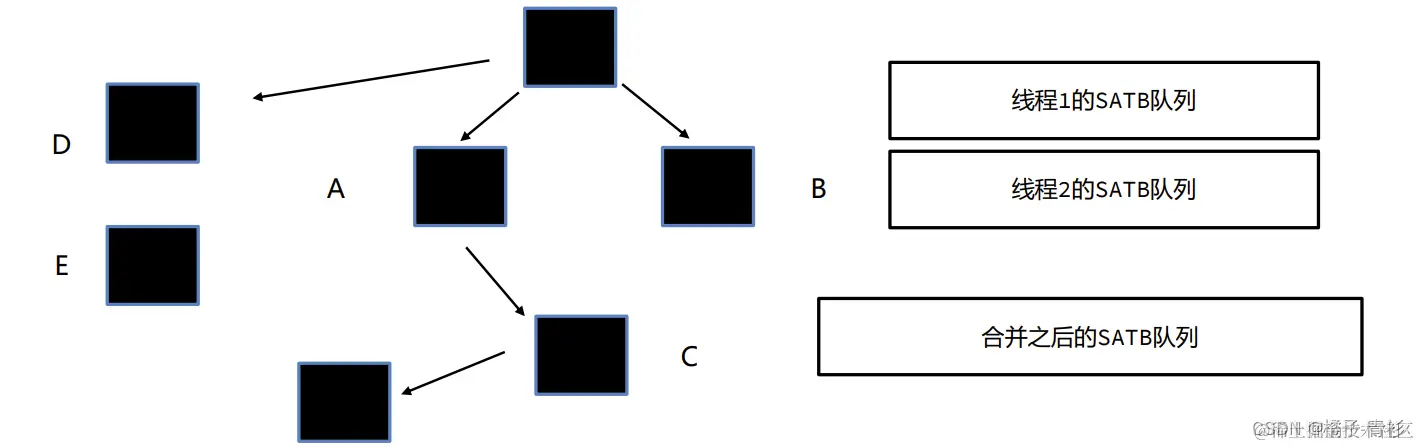 B.c = null)之前被触发,将即将被改变引用的对象(在这个例子中是c)放入SATB待处理队列中。每个线程都有自己的SATB队列,但最终这些队列会被汇总到一个全局的SATB队列中。