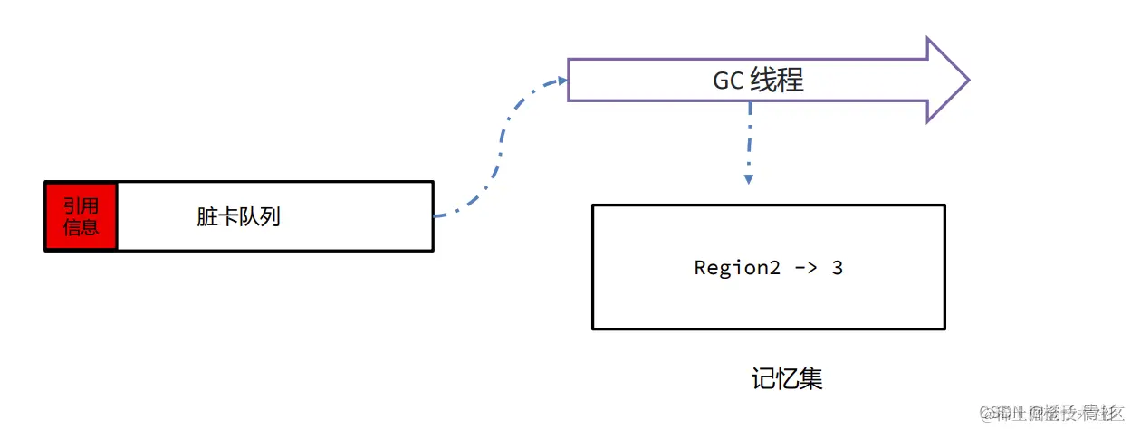- 记录引用关系到卡表:捕获到的引用变更信息会被记录到卡表中。卡表是一种高效的数据结构,用于快速识别哪些内存块可能包含被老年代引用的年轻代对象。同时,这些变更也会被标记为“脏卡”,并加入到一个专门的脏卡队列中。