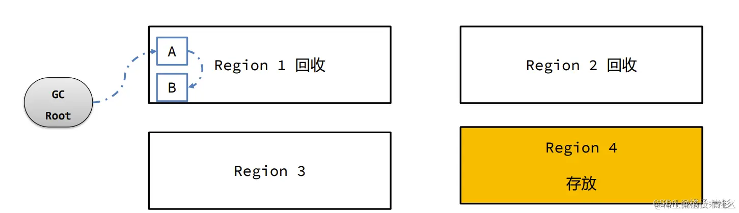 - 标记存活对象:在完成记忆集的更新后,垃圾回收器会开始标记存活对象。首先,记忆集中的对象会被加入到GC Root对象集合中。然后,从GC Root对象出发,垃圾回收器会遍历整个引用链,将链上的所有对象都标记为存活对象。这一步骤确保了只有仍在被引用的对象才会被保留。