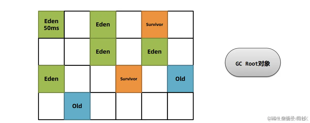 - 2.存活对象标记:在执行Young GC时,G1首先会精确地标记出Eden和Survivor区域中的存活对象。