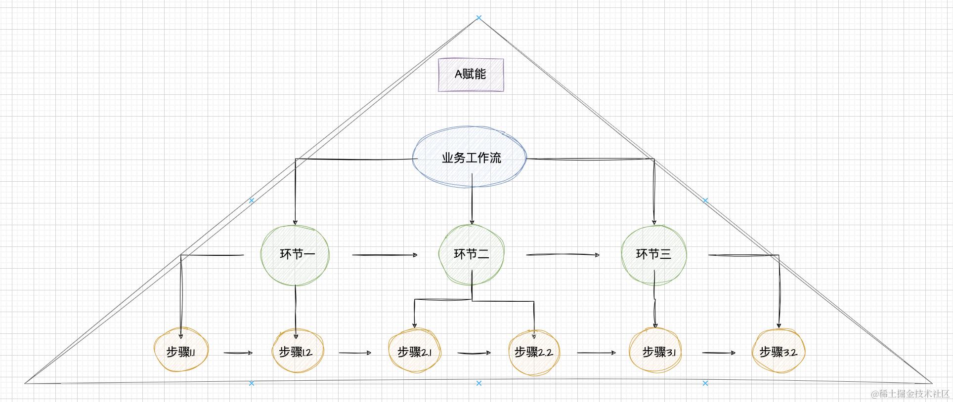 AI赋能金字塔模型:基于一个规范工作流,拆分为功能职责单一的环节或者步骤,尝试用AI针对每个环节/步骤进行赋能验证。