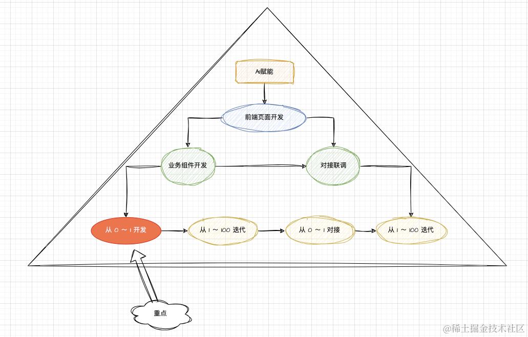 笔者总结了一个AI赋能工作流的模型---金字塔模型,AI赋能前端同样也适用。