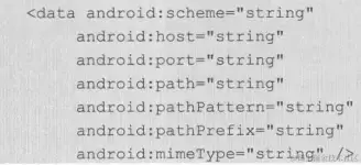data匹配规则和action相似,如果IntentFilter中定义了data,那么Intent中必须定义可匹配的data,data使用mimeType指定媒体类型。