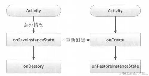 - 恢复过程:恢复数据时,可以在onRestorInstanceState或者在onCreate方法中(二者区别是onRestoreInstance方法一旦被调用,其参数Bundle,一定是有值的,不需要额外的判空;但是onCreate不行,需要进行判空),这两个方法任选一个进行数据恢复,但官方建议onRestoreInstanceState方法。