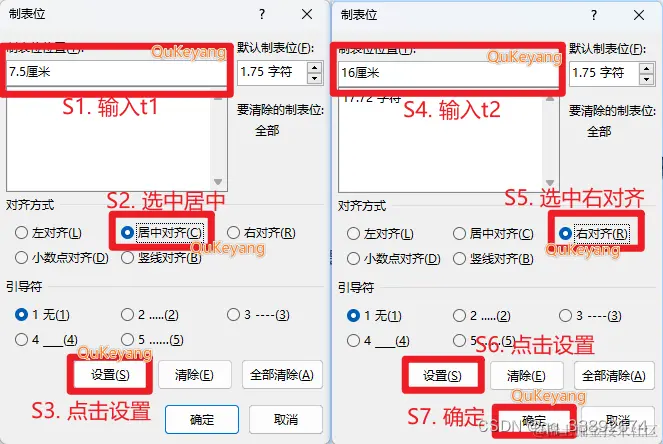 在制表位的弹出窗口:输入制表位位置——选择对齐方式——点击设置,插入一个制表位