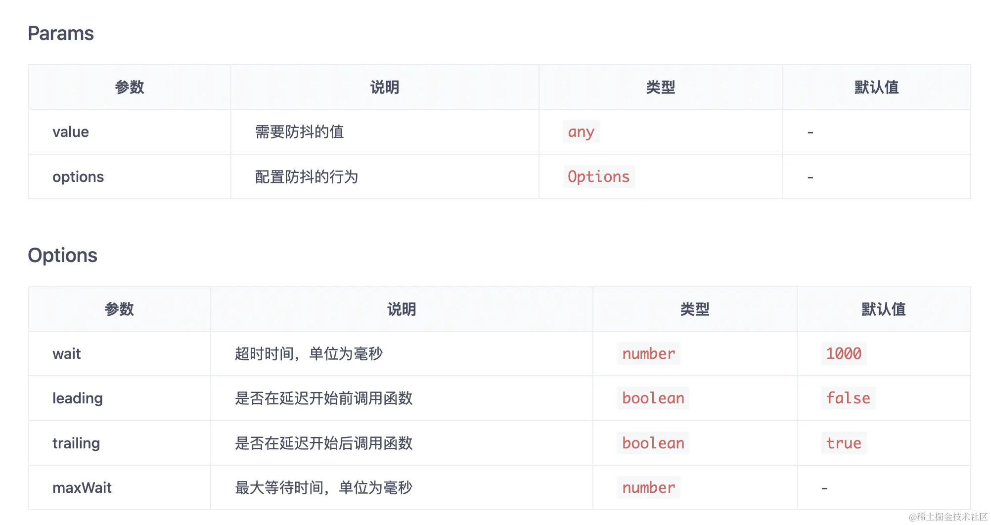 防抖的 4 个参数实际上都是 loadash 的 debounce 函数来处理。