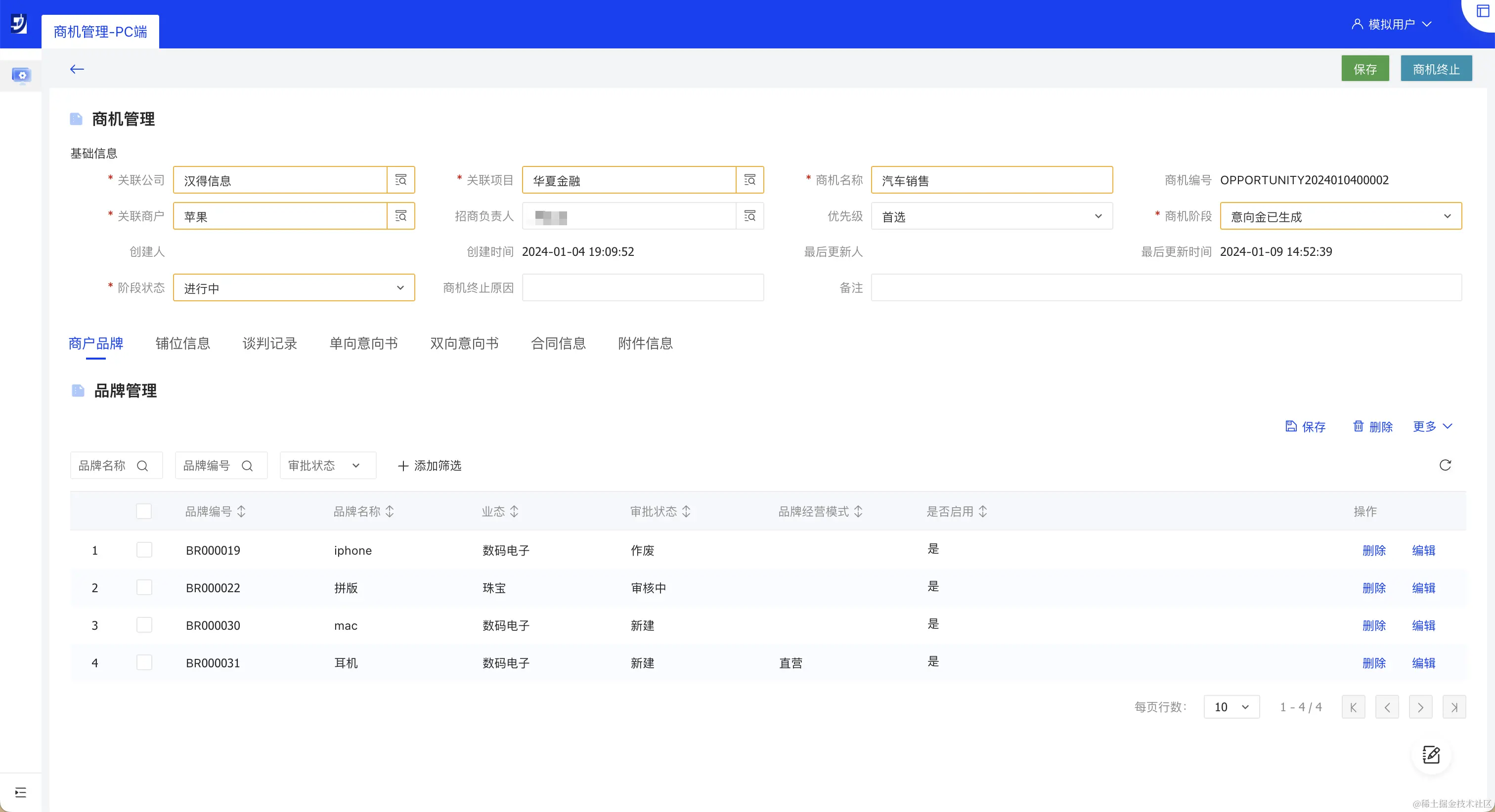 品牌管理模块用于管理商业地产项目中的品牌信息。用户可以通过品牌管理功能,跟踪和管理品牌租户的入驻情况。