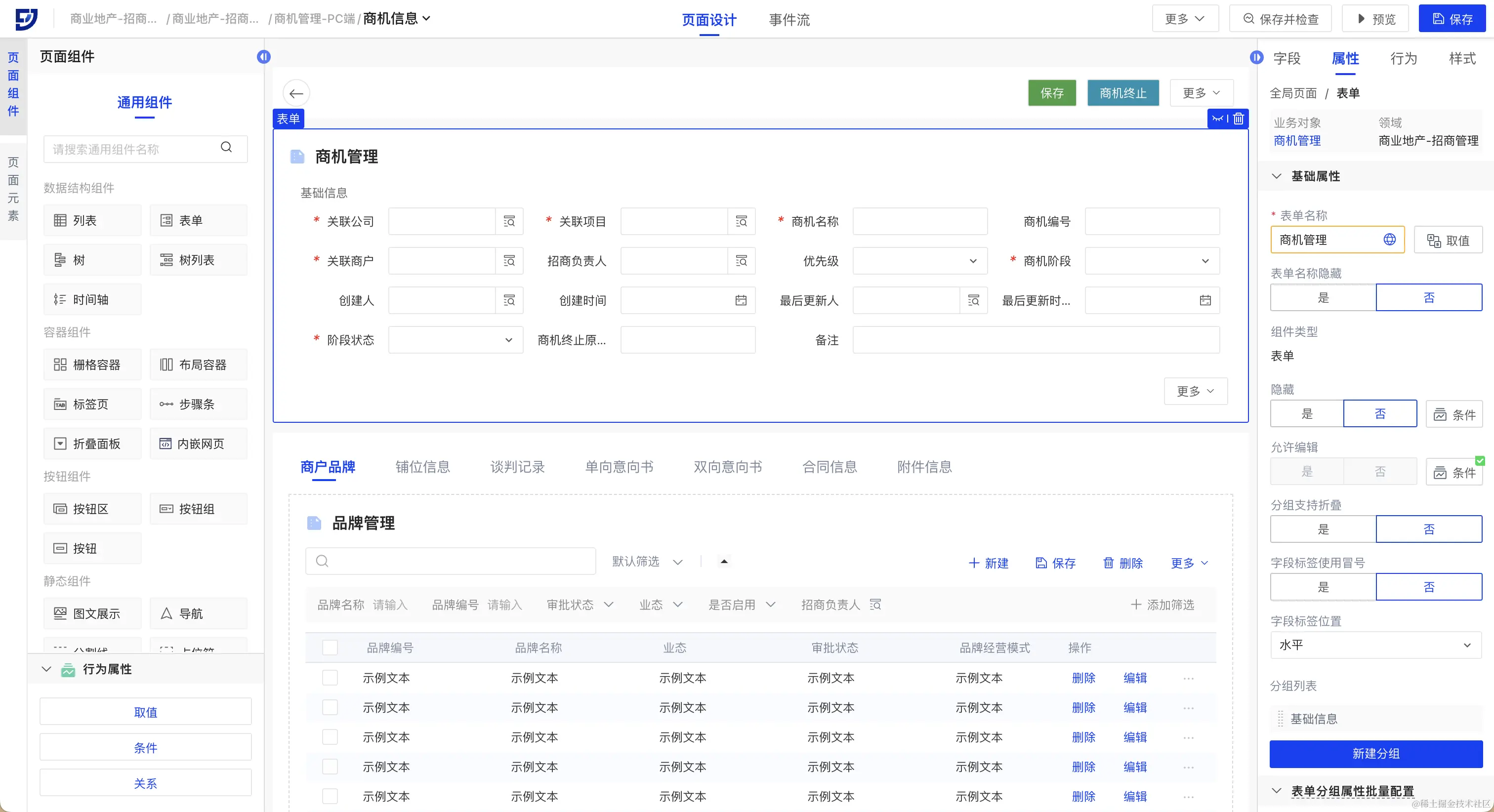 商业地产管理系统的主数据管理、招商管理和合同管理功能共同构成了一个综合性的解决方案,可以帮助商业地产企业更好地管理和运营其房地产资产,提高整体业务效率和盈利能力。本篇介绍了通过飞搭搭建商业管理系统的实现效果。飞搭支持轻松搭建,快速实现基本功能,也支持通过灵活的配置,实现复杂的场景需求。