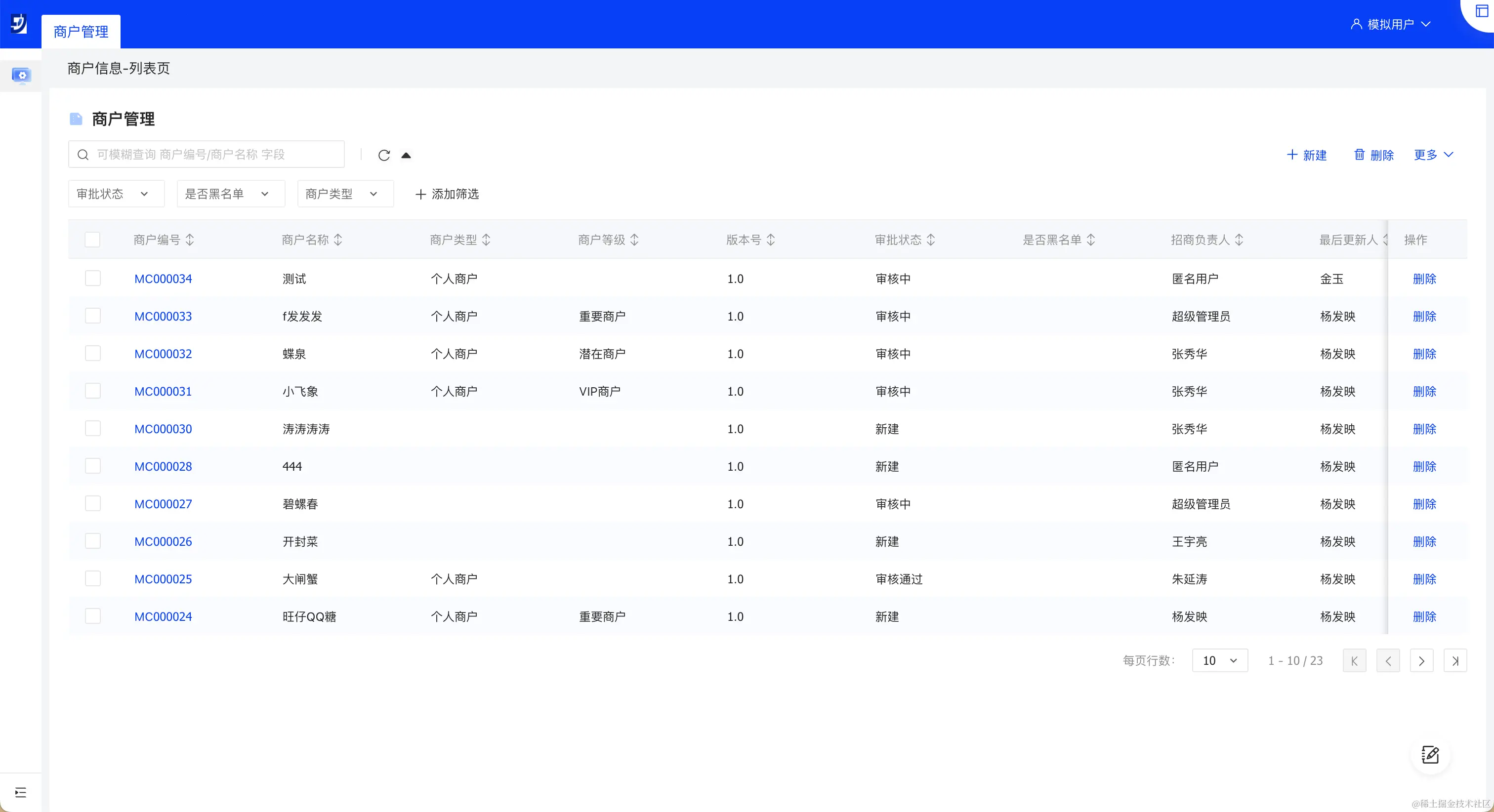● 商户管理: