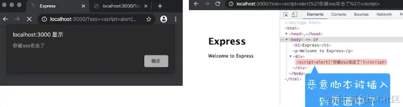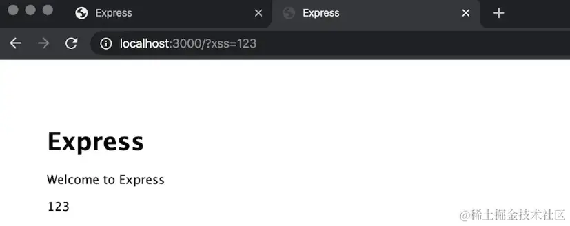 http://localhost:3000/?xss=alert('你被xss攻击了')