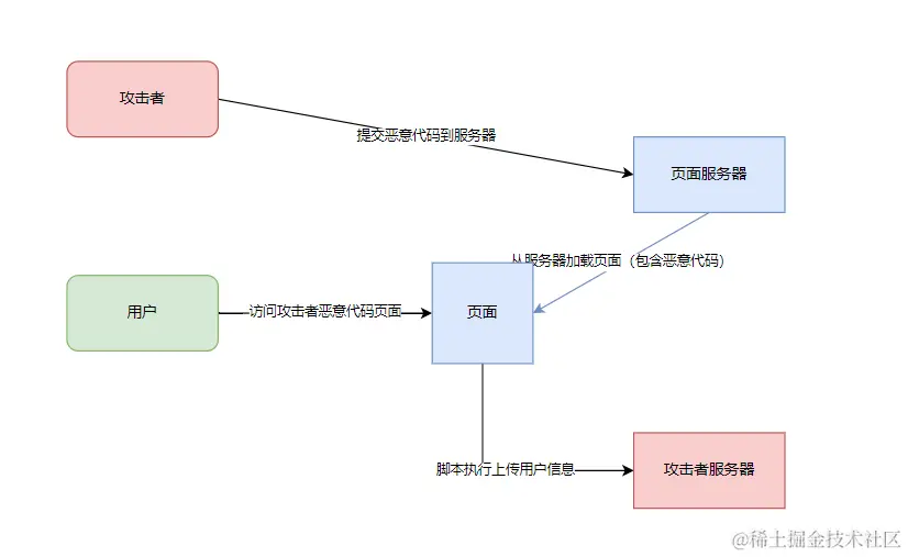 - 攻击者将恶意脚本上传到目标网站的数据库中,当用户访问包含这些恶意脚本的页面时,浏览器会执行这些脚本。