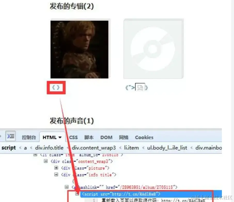 - 当攻击者成功发布专辑后,其它用户访问该专辑时,则会将该恶意代码返回到用户页面,从而发起攻击: