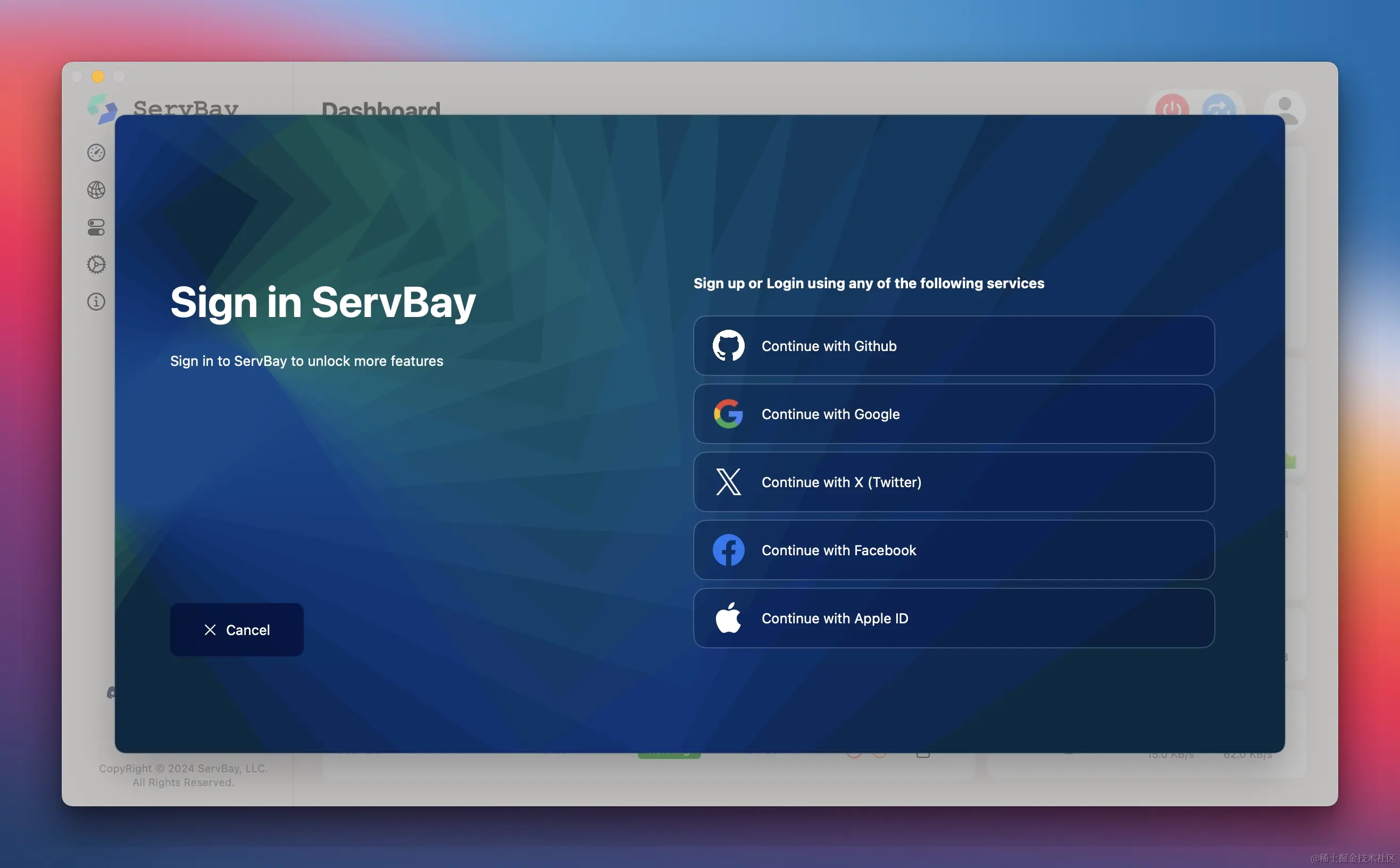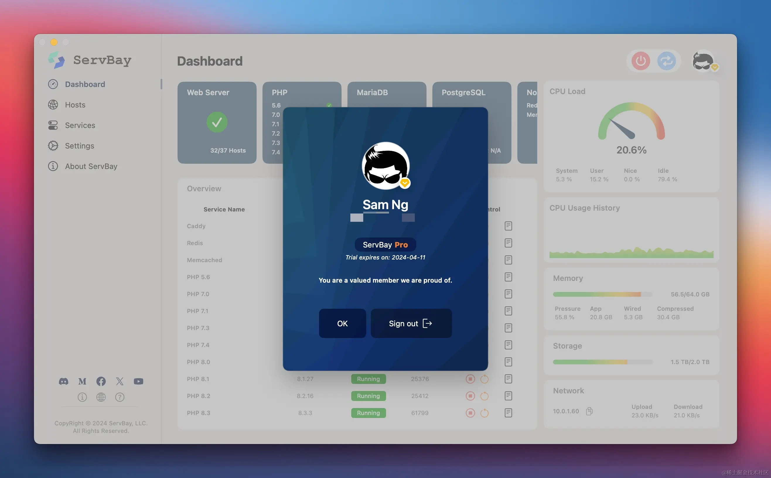 - 用户注册与登录: 加入ServBay现在更加方便。新增用户注册与登录功能,支持Google、GitHub、Facebook、Twitter和Apple ID等第三方认证方式,仅需几步即可完成账户设置。此更新将为所有用户提供更个性化的体验。
