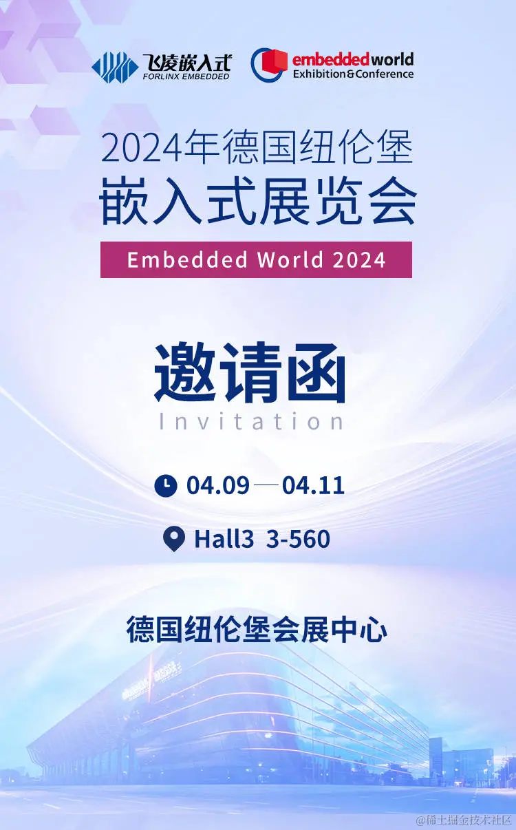 飞凌嵌入式即将亮相德国纽伦堡「Embedded World 2024」 飞凌嵌入式 2024-03-30 82 阅读1分钟 2024年德国纽伦堡嵌入式展览会(Embedded World 2024)将于4月9日~4月11日盛大开幕,本届展会将展示最新的电子技术与应用,涵盖了半导体、嵌入式系统、电源、电池、测试仪器、智能制造、电子设计自动化等众多领域,并将汇集上千家来自世界各地的电子产业领先企业参展。 届时,飞凌嵌入式将携多款前沿的重量级嵌入式主控产品及热门行业解决方案Demo亮相,聚焦人工智能、智慧交通、工业互联网、智慧医疗、电力与储能等领域,为全球客户带来一场技术与创新的盛宴。