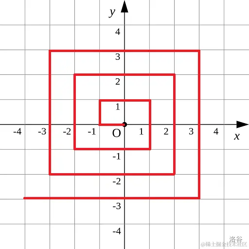 对于整点 ,我们定义它到原点的距离 是从原点到 的螺旋折线段的长度。