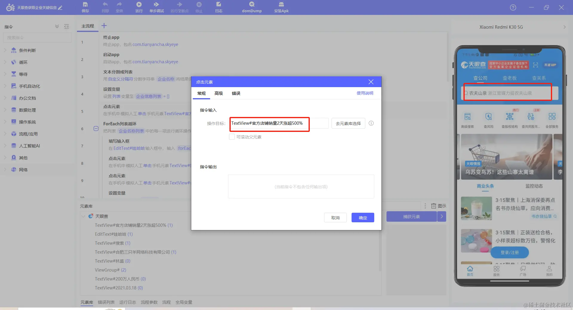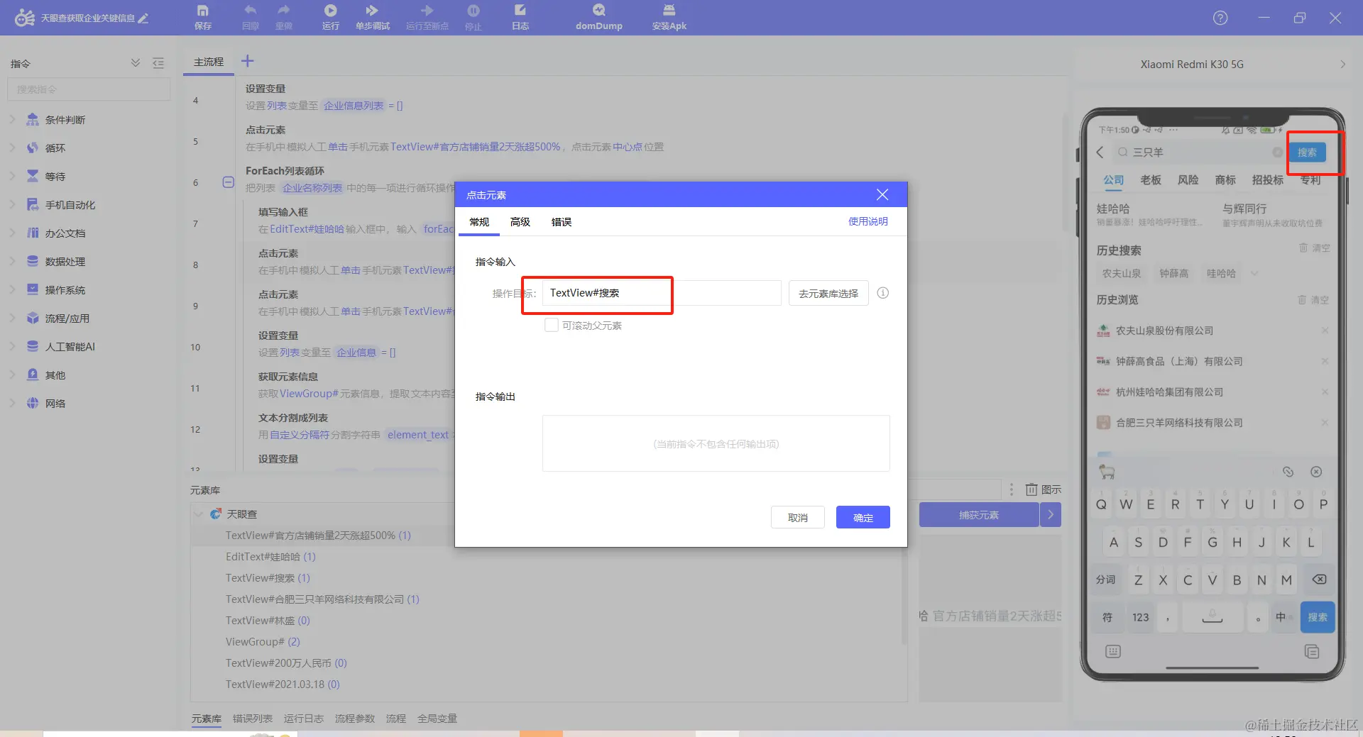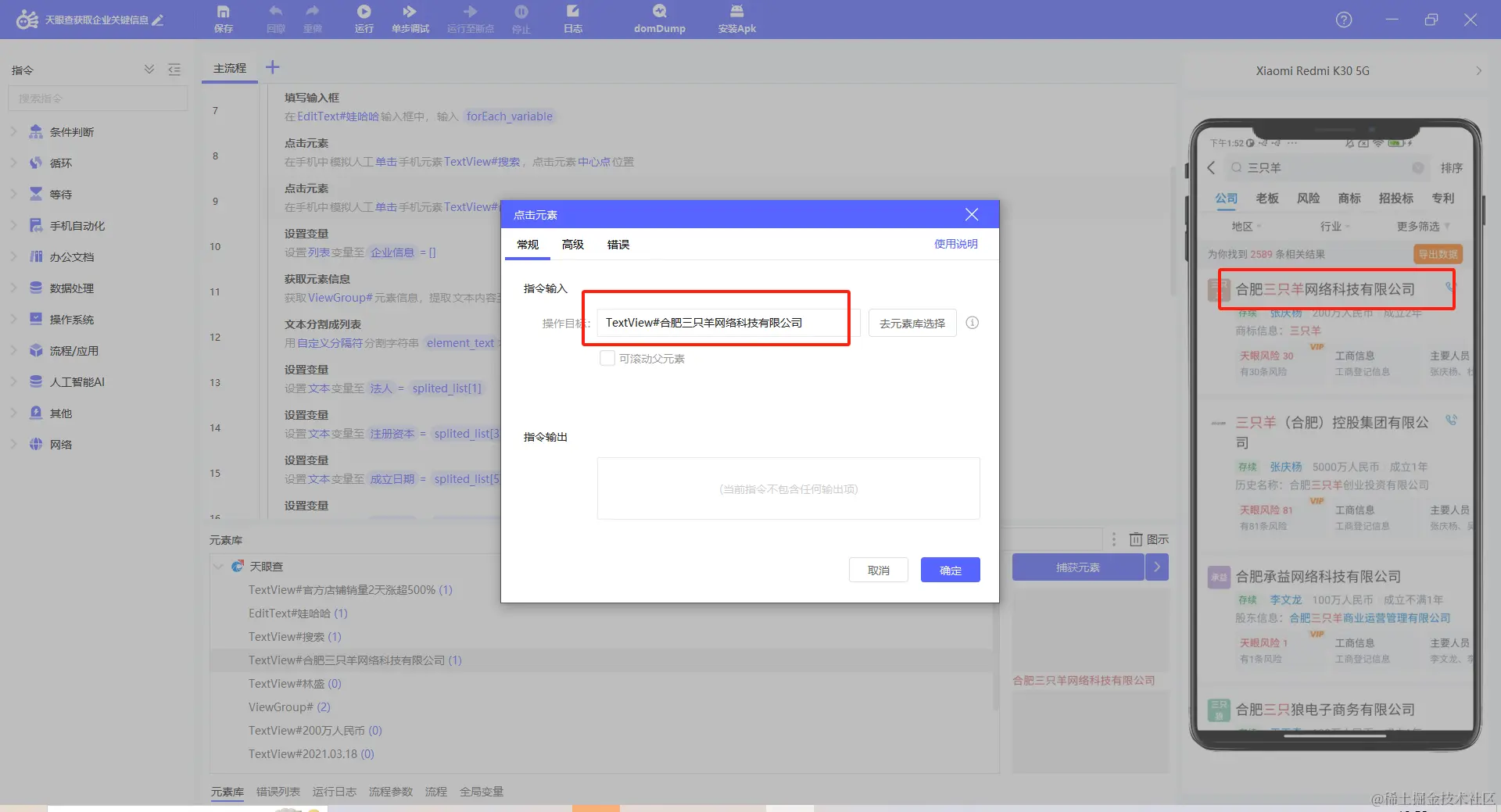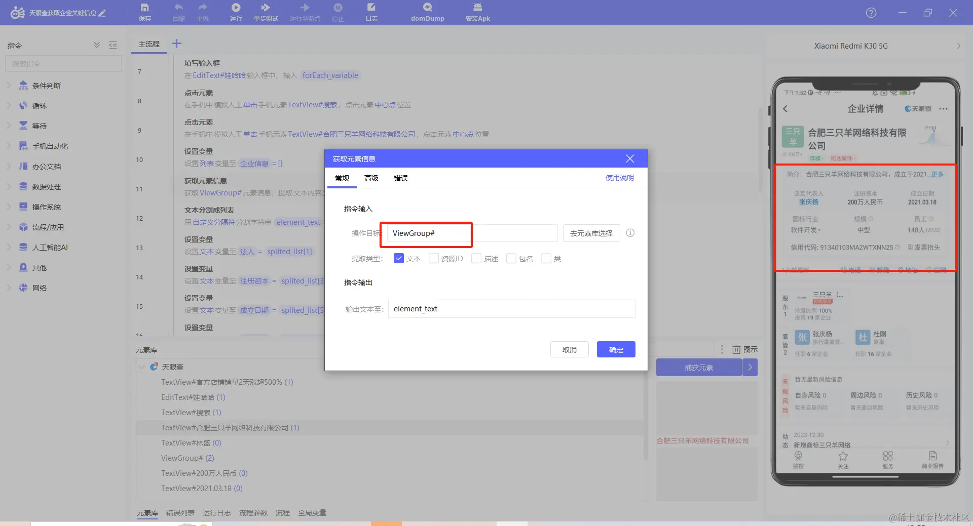 企业信息收集我是通过天眼查app获取的,下面挂一张通过这个自动化工具实现的效果动图,这里都是通过工具实现的自动化操作,怎么样?效果看起来很酷炫吧。