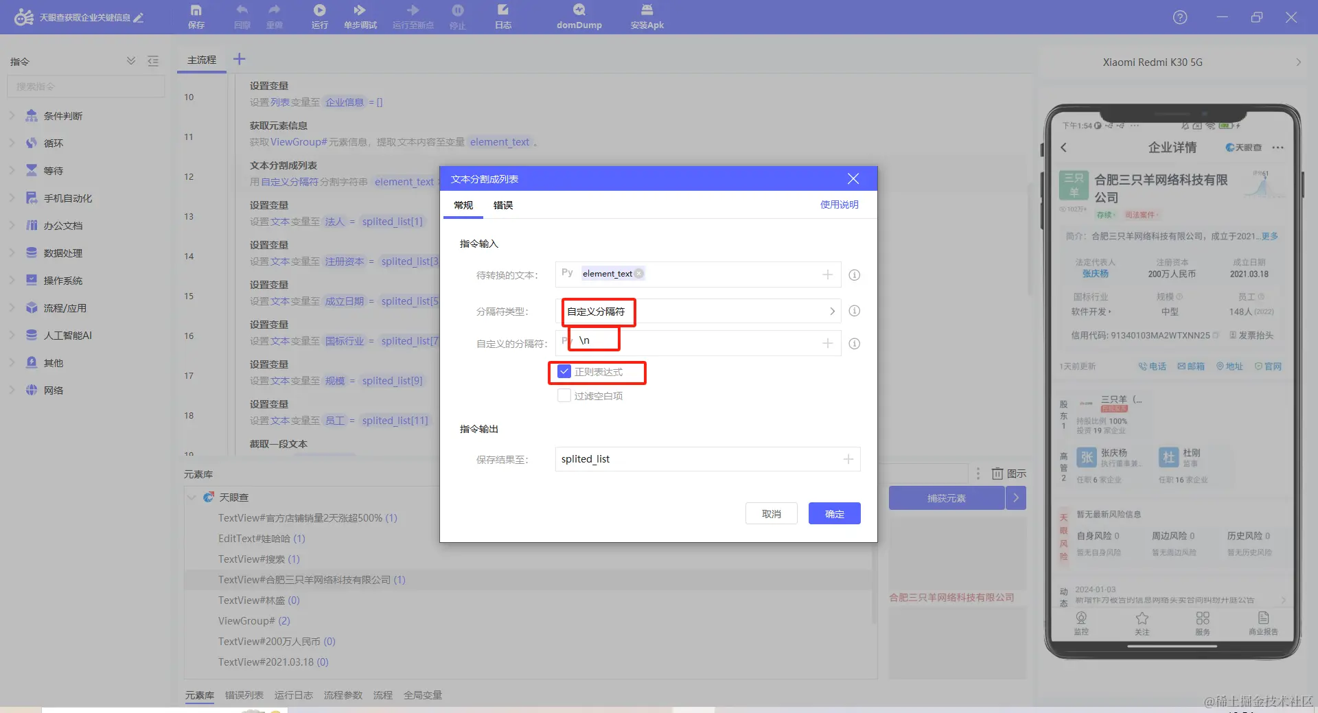 老板最近给了我一批企业名单,说让收集下这批名单上各个维度的企业信息,为了商业和市场调查做前期的铺垫,我欣然答应,但是拿到名单的那一刻,我的内心是拒绝的,好家伙,名单上居然有1000多家企业,这要整理到啥时候啊。然而,朋友听了我的诉苦之后说,rpa会帮你解决一切。还推荐了我一款好用的rpa自动化工具,完美解决了我面对的难题,具体的效果,脚本编辑步骤,如何使用,大家往下看,保姆级教程奉上。