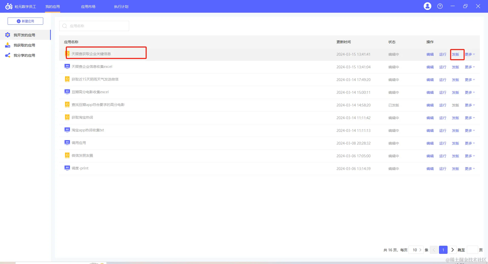 10.编辑好移动端的应用之后,我们返回到我开发的应用列表,点击这里的发版