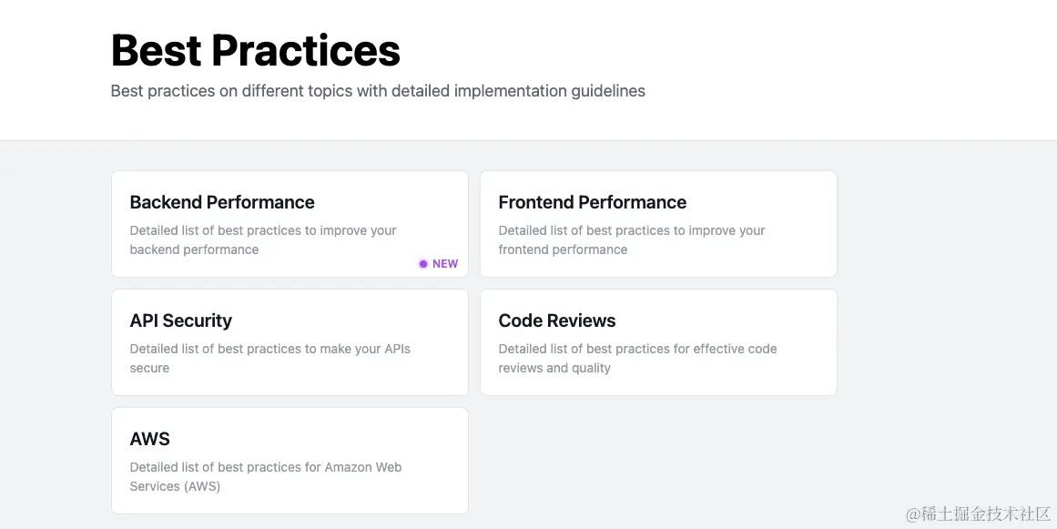 除了学习路线图外,现在还扩展出了一些最佳实践,可以供大家学习。