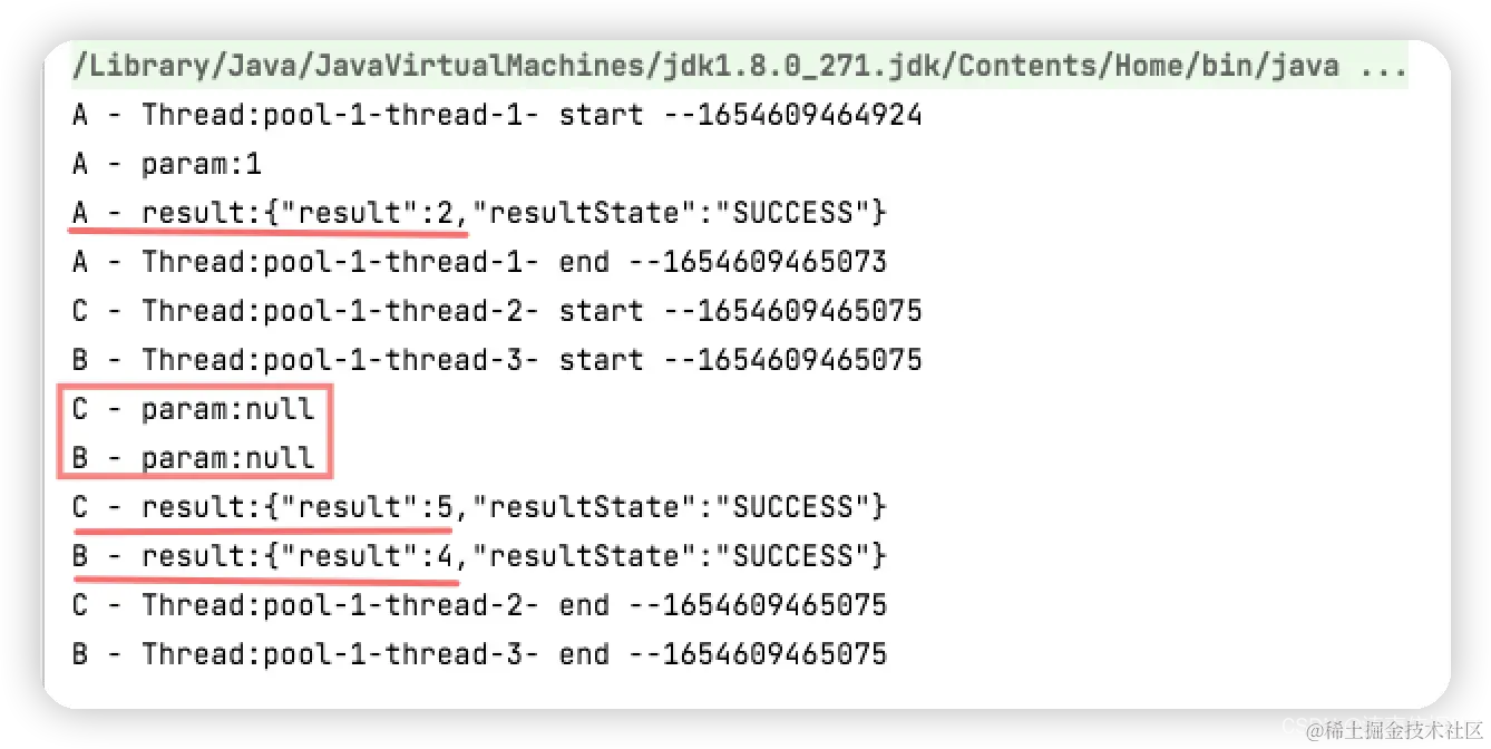 System.out.println("C - Thread:" + Thread.currentThread().getName() + "- end --" + SystemClock.now());