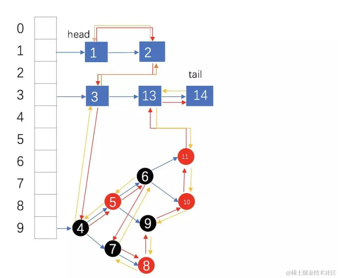 HashMap和双向链表的密切配合和分工合作造就了LinkedHashMap。特别需要注意的是,next用于维护HashMap各个桶中的Entry链,before、after用于维护LinkedHashMap的双向链表,虽然它们的作用对象都是Entry,但是各自分离,是两码事儿。