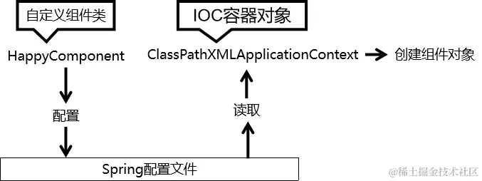 想要配置文件中声明组件类信息真正的进行实例化成Bean对象和形成Bean之间的引用关系,我们需要声明IoC容器对象,读取配置文件,实例化组件和关系维护的过程都是在IoC容器中实现的!
