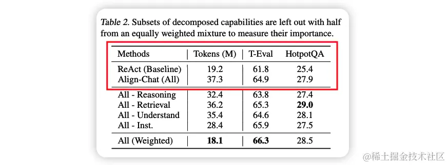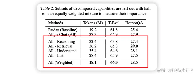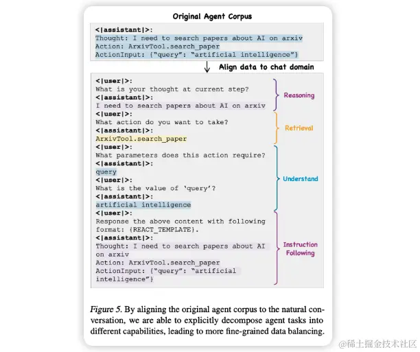1.(论文4.1节)将agent微调数据从ReAct、JSON等形式转化为自然对话的形式,从而和预训练数据的格式对齐:Table 2可以观察到对齐后的效果提升。