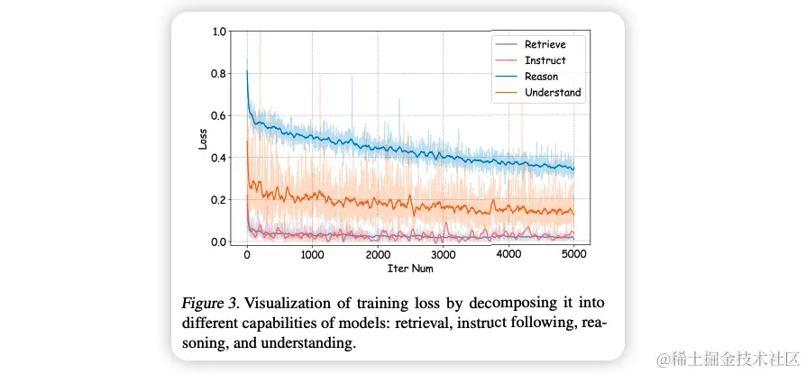 2. (论文4.2节)将训练数据按推理、检索、理解、指令遵循的能力分类进行拆分,并做data balancing:Table 2显示了推理和理解是最有益的混合成分,其次是检索和指令遵循:当将推理和理解数据的比例减少到50%时,最终性能分别下降了1.1/0.3个百分点。而通过减少检索和指令遵循的数量,性能几乎不受影响,甚至有所提升。这和前文Figure3展示的检索和指令遵循的损失下降速度比推理和理解快得多的观察一致。