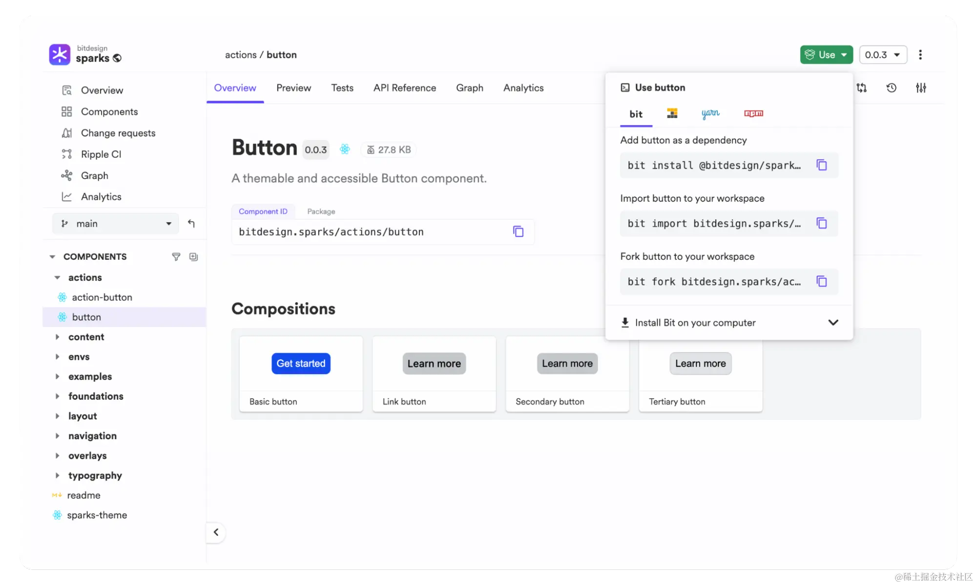 我们的按钮组件现在在 bit.cloud 上提供新版本。我们可以继续维护它,或者我们可以将其从我们的项目中删除,同时只保留软件包以供使用。