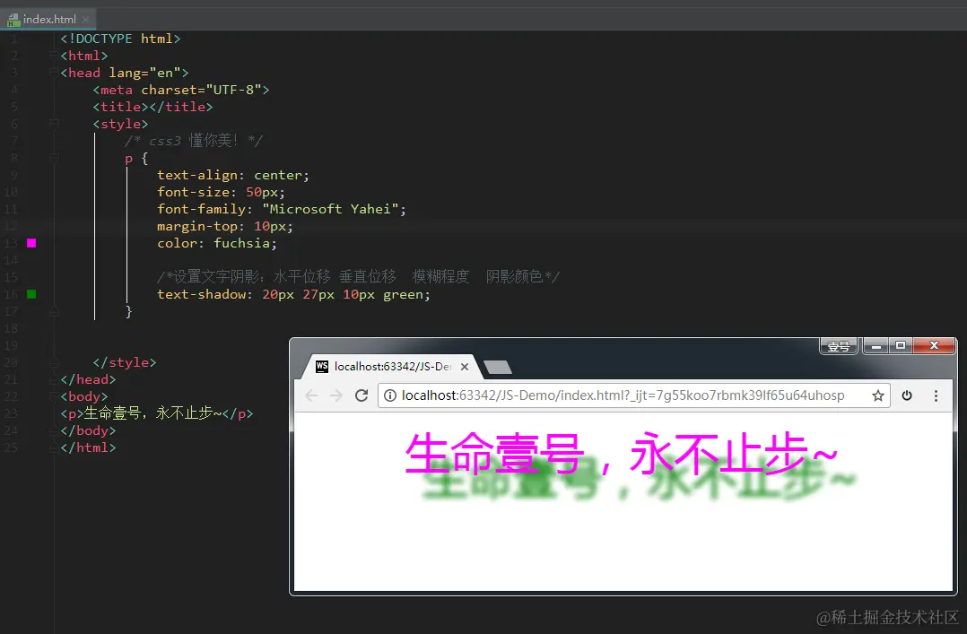 text-shadow:设置文本的阴影