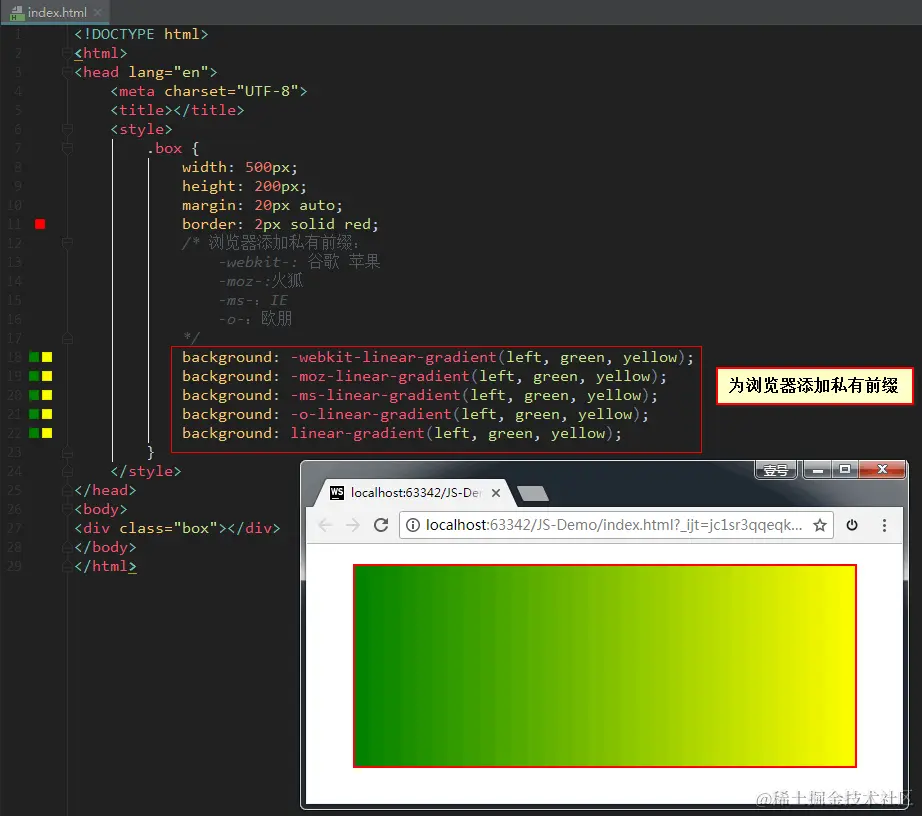 此时,我们可以为浏览器添加不同的私有前缀,属性就可以生效了。