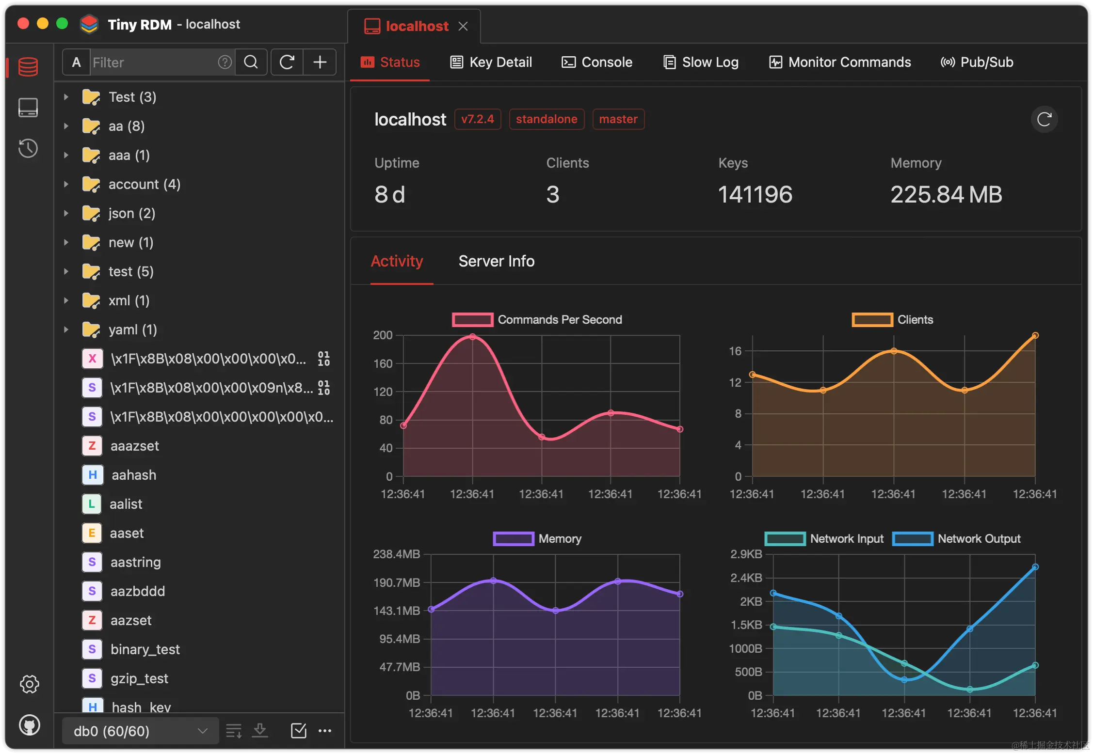 除了可视化操作,它还保存了命令操作历史记录,便于用户回溯和重复执行命令。另外,Tiny RDM 内置了命令行模式,满足习惯于命令行操作的用户需求,同时也提供慢日志分析功能,帮助用户深入优化性能。