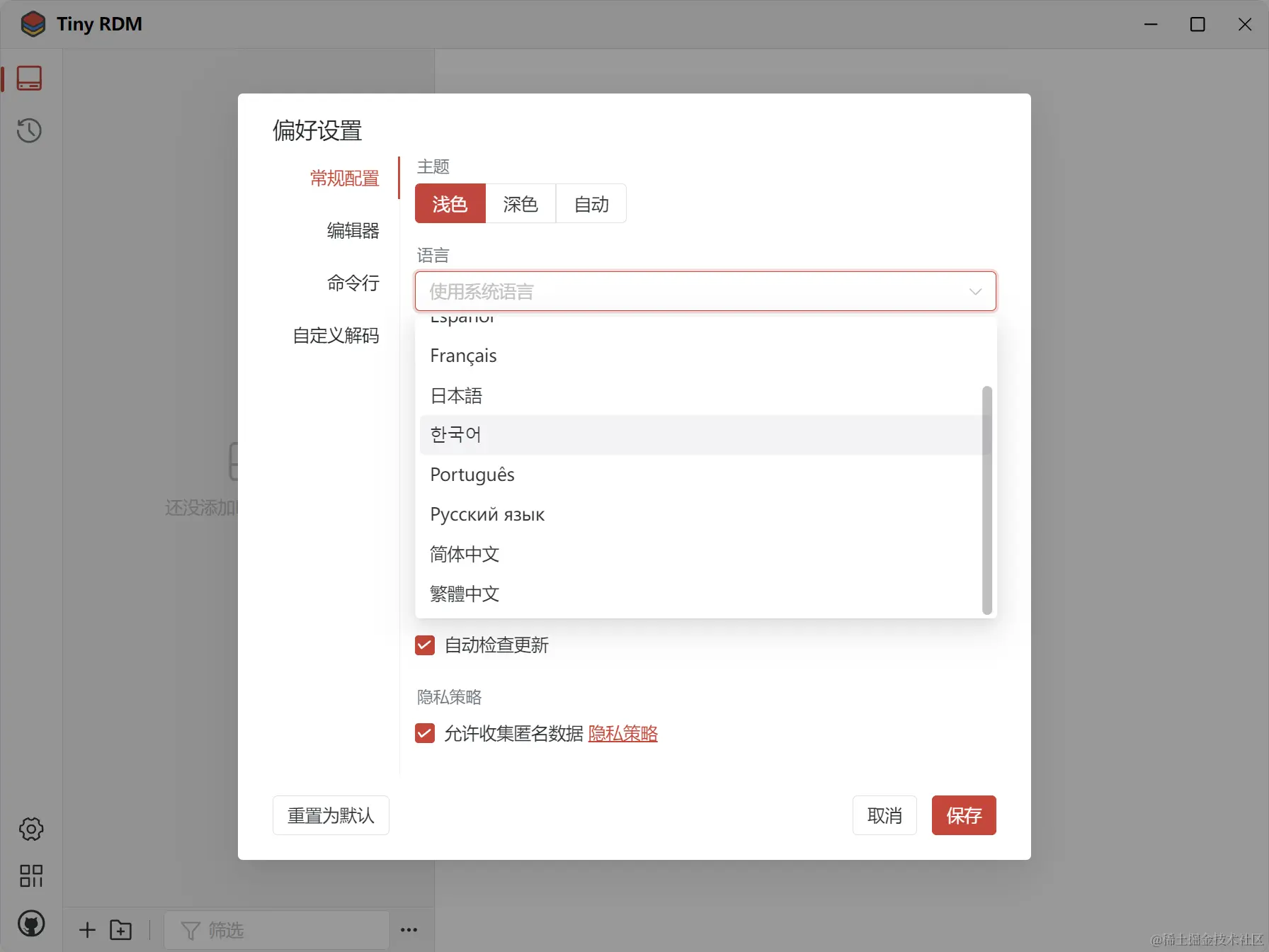 Tiny RDM 是一款卓越的跨平台Redis桌面管理工具,它凭借超轻量级的架构,基于Webview2技术构建而成,摒弃了传统嵌入式浏览器,确保了流畅快速的用户体验。安装包仅有11M大小,其用户界面精心设计,兼顾视觉美感与实用性,提供浅色与深色两种主题切换以适应不同用户需求,并且支持多国语言,确保全球开发者无障碍使用。