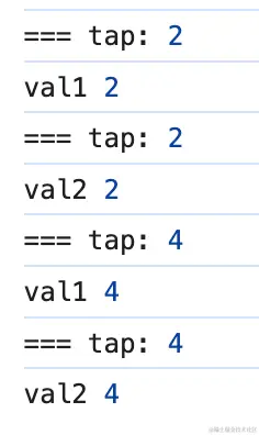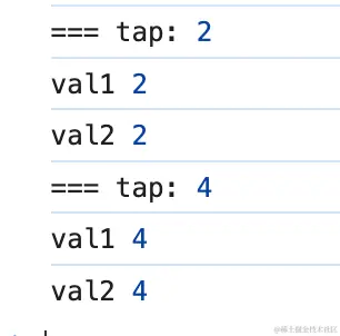 因为 Subject 在经过的操作符处理后,返回的是普通的 Observable 了。如果未使用share操作符,那么中间经过的操作符处理路径也是相互独立的,也就会各自执行tap。