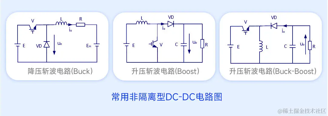 直流-直流变换电路的功能是将一种直流电变为另一种直流电。根据电路结构不同,直流-直流变换电路分为非隔离型DC-DC电路以及隔离型DC-DC电路。