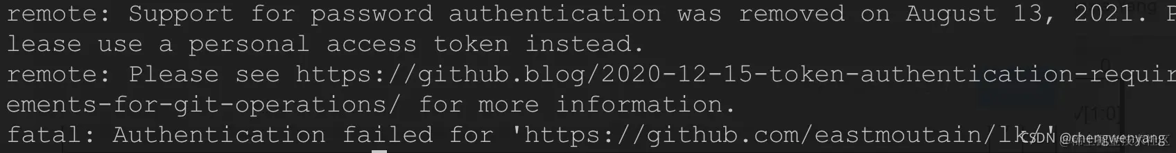 remote: Support for password authentication was remove on August 123, 2021. Please use a personal access token instead.
