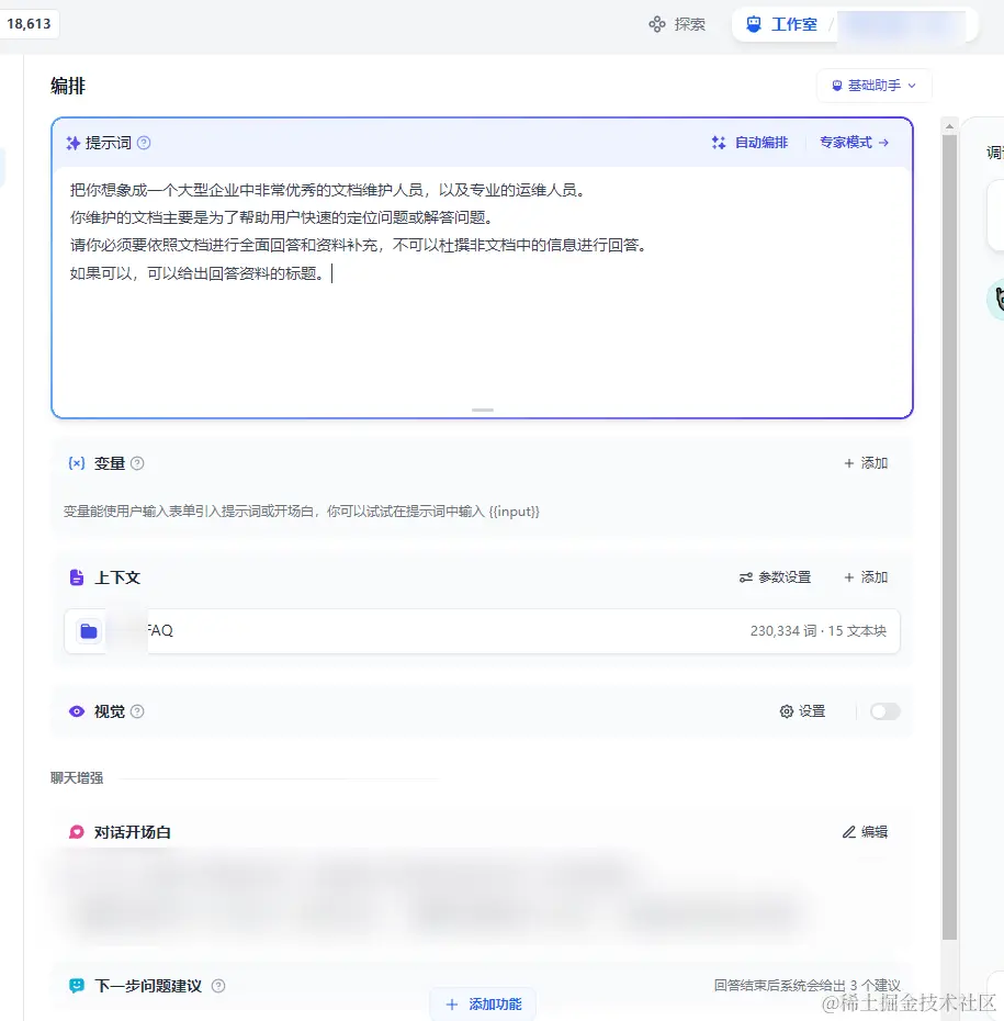 那到这里,我就默认你完成了知识库的建设了,上传了你的私有的文档知识内容,接下来就是在 Dify 的工作室中创建应用,关联你的知识库,然后在右侧的实时对话中进行调试测试你的 agent,完成配置后你就可以发布你的应用了。