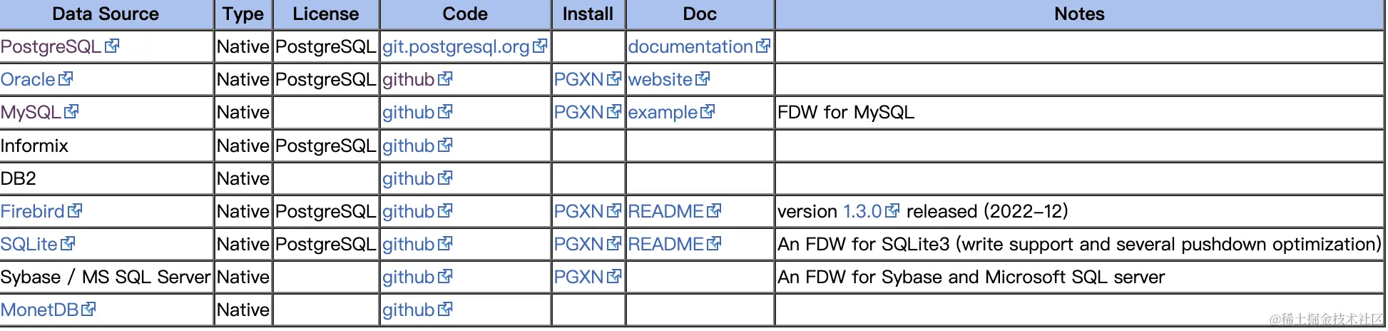 可以让我们在PostgreSQL 中使用SQL查询极为丰富的外部数据: