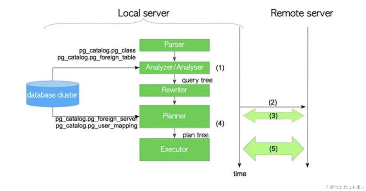 FDW (foreign-data wrapper,外部数据包装器),PostgreSQL FDW 是一种外部访问接口,它可以被用来访问存储在外部的数据,这些数据可以是外部的pg数据库,也可以oracle、mysql等数据库,甚至可以是文件。