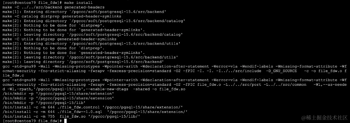 [postgres@centos79 ~]$ cd /pgccc/soft/postgresql-15.6/contrib